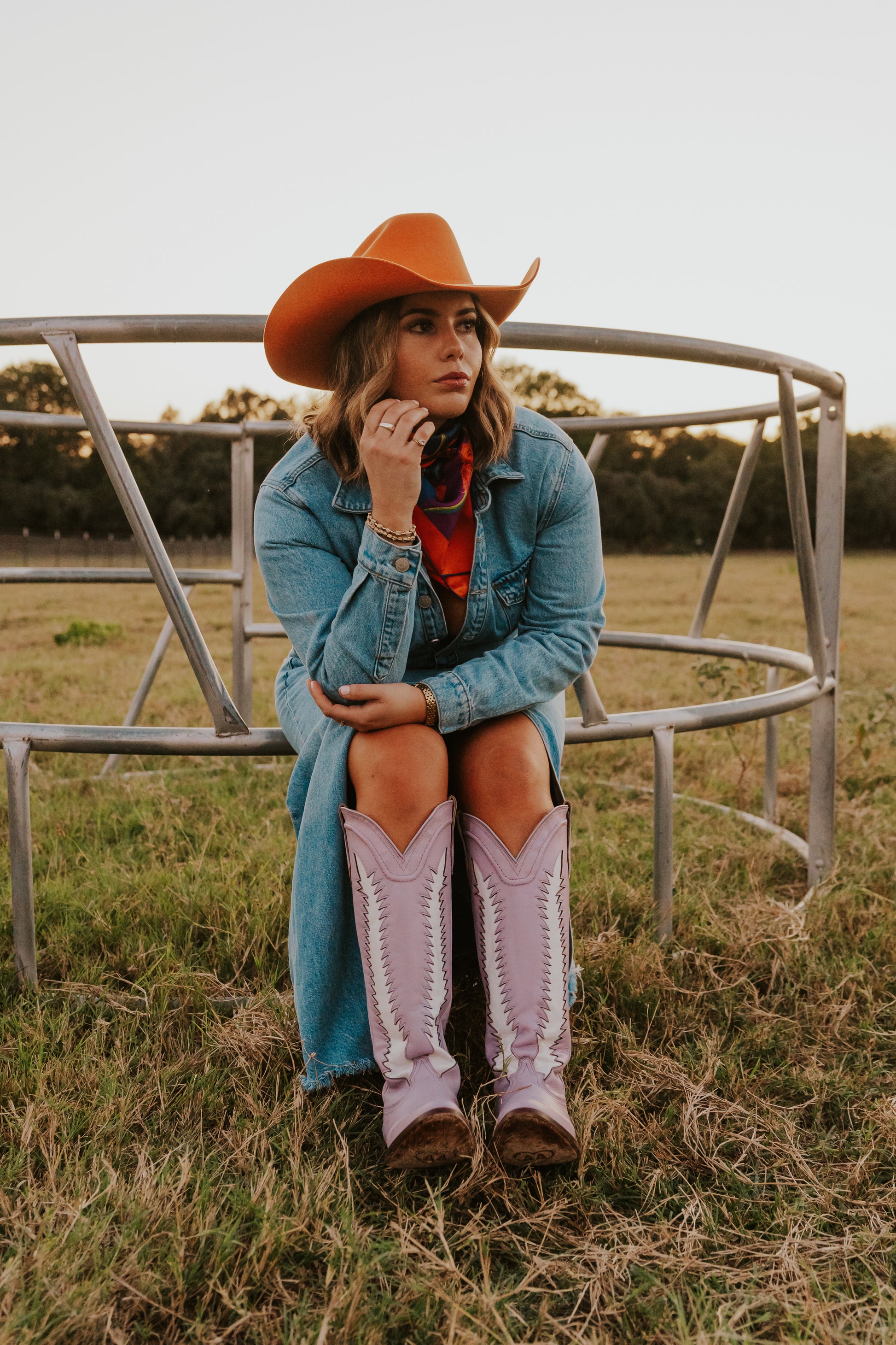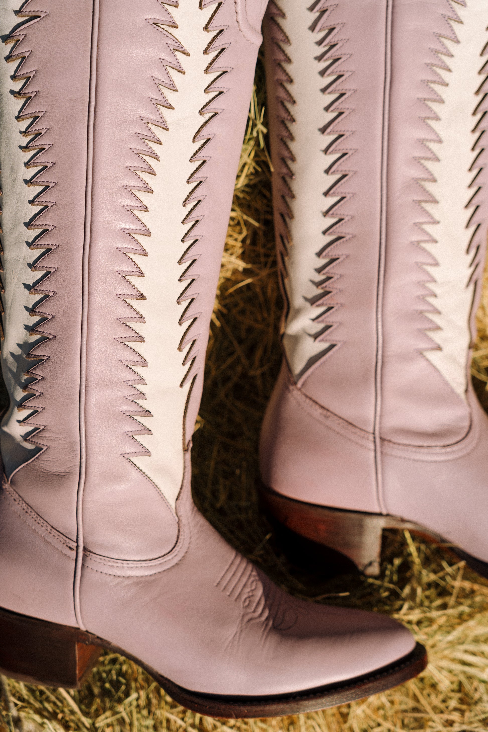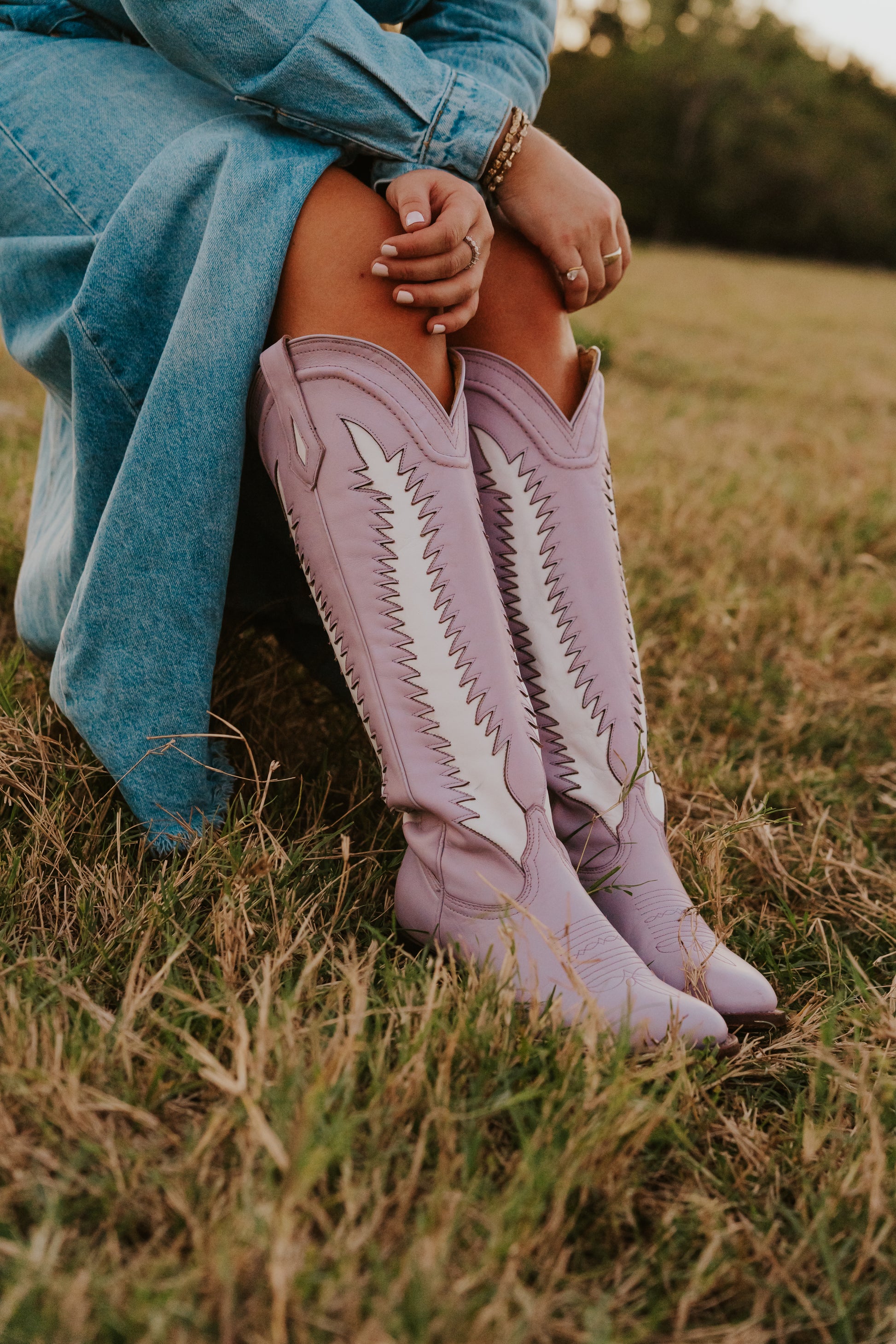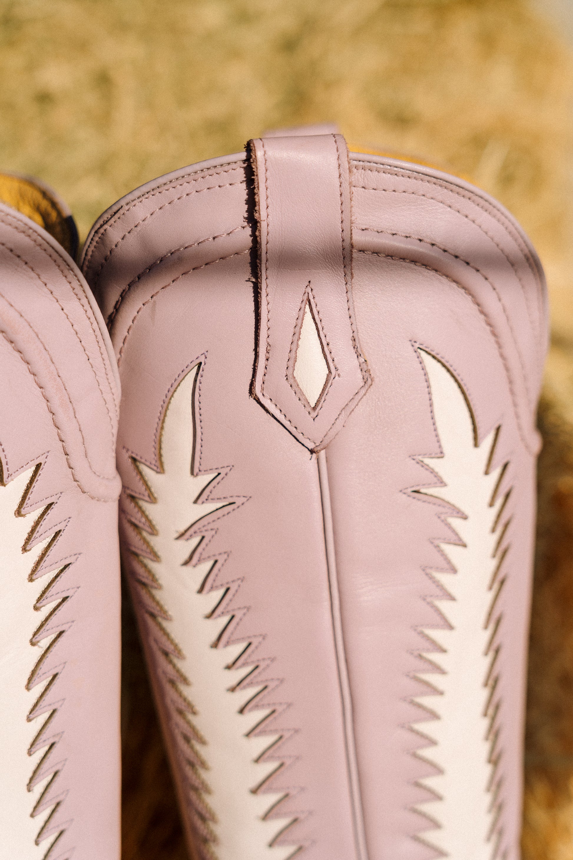 Crafted from full-grain calfskin leather in our signature lavender, this boot features a crisp white inlay for a soft and standout look.